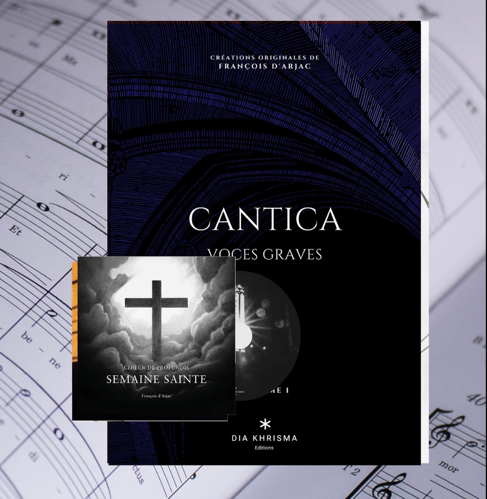 • L’album CD Semaine Sainte : un chemin de prière musicale autour de la Passion du Christ, interprété par un chœur d’hommes (TTBB), dans un style épuré, grave et liturgique.